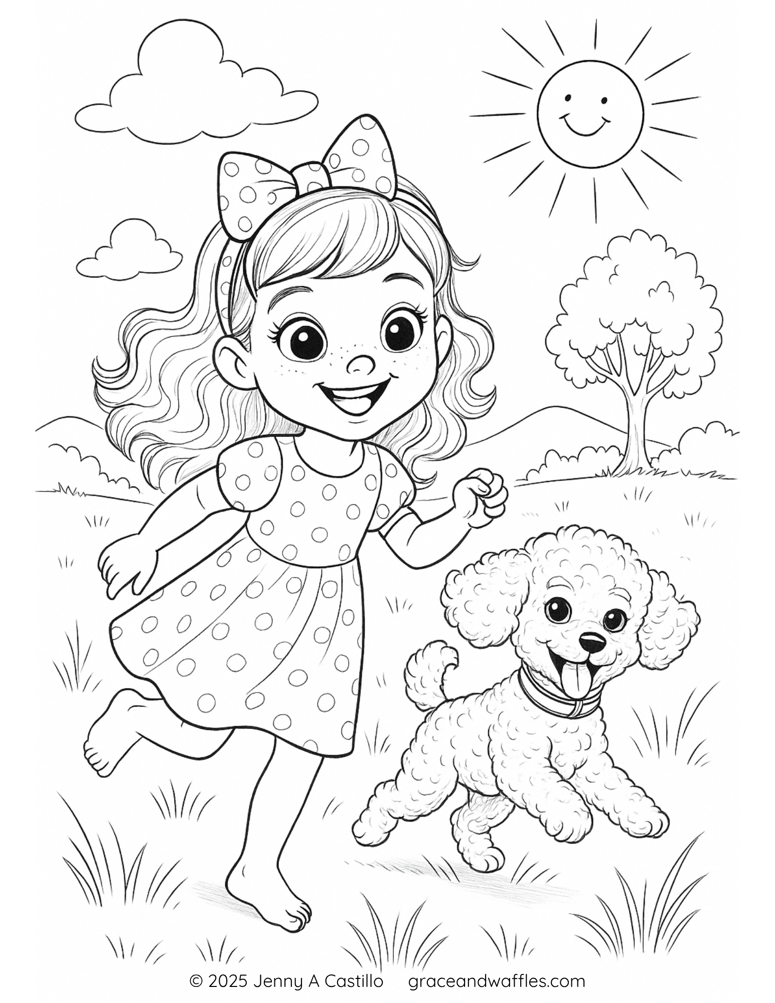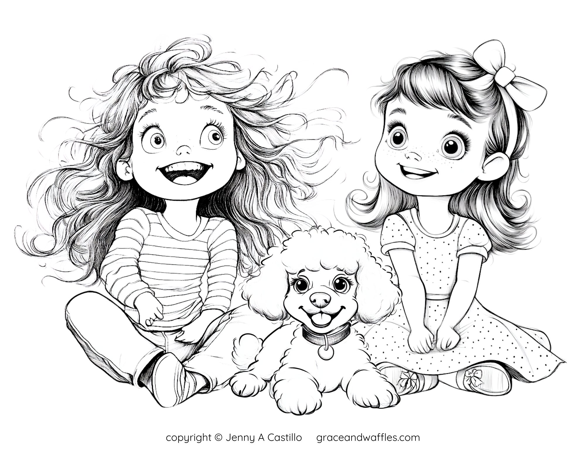 Grab your crayons and bring Grace, Waffles, and friends to life! Click on a button to download the coloring page and start coloring!